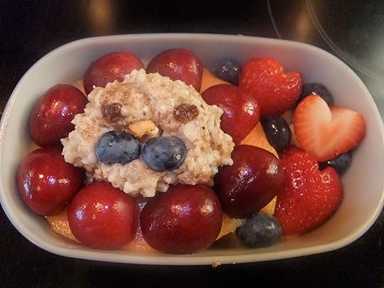 Note the heart-shaped figs, my name in chocolate on top, and the oatmeal wink. Totemo jozu as the Japanese would say!