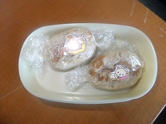 Individually wrapped oatmeal-peanut butter portions with his and hers kuma-chan stickers. I think Russell Crowe's Japanese girlfriend makes him something similar.