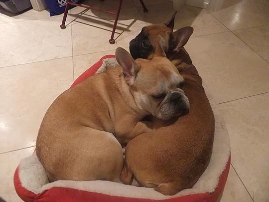 On the not-home front (I'm babysitting Fondy place – and her dogs until Saturday), Akemi phoned me in a panic this afternoon. Apparently, Brie – who has been bullying the other dogs – got into it with Bubba, knicking him. I checked him out when I got not-home. He doesn't seem to be in any pain, but he's leaving little bloody smudges wherever he goes. My attempts to locate the wound have proven fruitless so we're just going to keep an eye on him. Poor little guy.