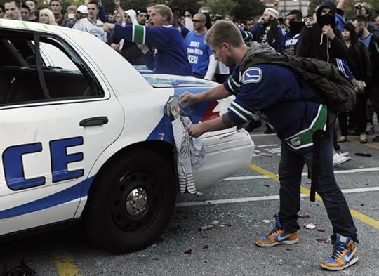 After dinner, I went home, worked out, watched part of the hockey game, grew disillusioned, then walked the dogs and started reading Charles Yu's How to Live Safely in a Science Fictional Universe. It wasn't until this morning that I heard about the riots. What amazed me was not so much the fact that these assholes would be stupid enough to loot and destroy property, but that they'd be stupid enough to pose for pictures or brag about it on their facebook pages.