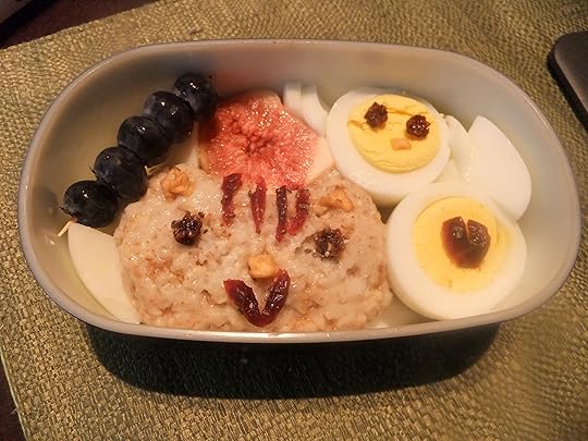 Akemi took the day off so I was left to craft my own inspired oatmeal/fruit/peanut butter masterpiece. Pretty impressive, huh? Akemi took one look at it and made me promise I wouldn't try to pass it off as one of her bento creations. Personally, I think she was just jealous.