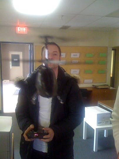 The action sequences in this series are going to be a lot bigger, a lot more colorful, and a lot more complicated than your average show. As a result, we've often found ourselves diagramming the choreography in order to explain who does what, where, and how. Paul suggested we start using props – specifically, some models cars: an Audi, a couple of SUVs, and some sedans (and a red Porsche and beat up Volvo for episode 2). Anyone know of a good model car shop in the Toronto area? Alexander took Paul's suggestion to heart and brought in his own prop – one day late for the episode discussed – and proceeded to use it as a form of therapy throughout the breaking session…