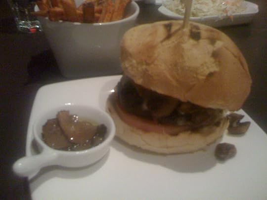 Alas, no movement on the accommodation front. Looks like I'll be extending my stay in the apartment while I expand my search for a house. On the bright side, it turns out my current locations isn't too bad. I'm only a ten minute walk from Silver Snail Comics and a terrific burger joint I checked out last night with Akemi. m: brgr first opened in Montreal a couple of years back and it immediately piqued my interest. It's a place that the Carls and Alex's of the world can enjoy as much as I do because the burger building basics allow for everything from simple cheeseburgers to foie-gras topped kobe beef burgers. For instance, last night, I went with with the brioche bun, kobe beef, caramelized onions, fig jam, porcini mushrooms, and black truffle carpaccio. I expected it to be good but, holy smokes, it surpassed my lofty expectations. It was THE BEST BURGER I've had in recent memory. And when it came time to dessert -