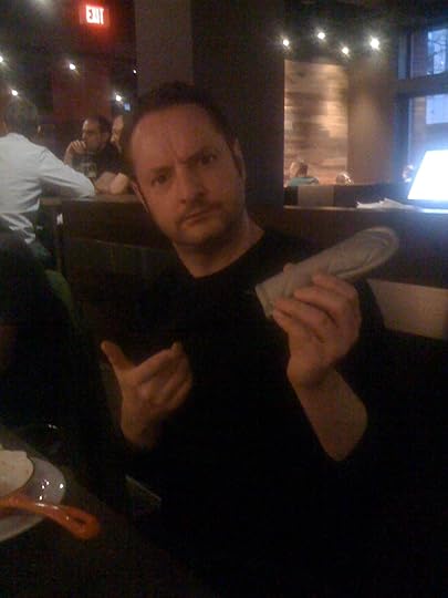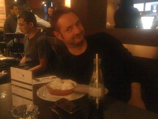 Why, yes. It IS Alex Levine, former Stargate script coordinator, now a writer on Flashpoint. He joined us (Rob, Carl, Paul, myself, and, of course, birthday boy Alexaner) for a very good dinner at Bymark Restaurant where I enjoyed a great butter-braised lobster poutine, oxtail risotto, gnocchi with buffalo ricotta, short ribs, bourbon chocolate cake, and rum and raisin cookie dough ice cream. Alas, I forgot my camera in Vancouver so I had to make do with subpar cell phone pics. This weekend, I'm picking up a new camera – among other necessities – after which this blog will return to its regularly scheduled programming.