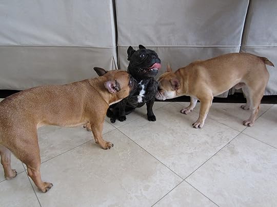 Anyway, we returned home, dropped off our purchases, picked up the dogs – all four of 'em – and headed over to Fondy's place to pick up Jelly's meds, some red velvet cake, and find out if Lulu would hit it off with Brie and Stewie…