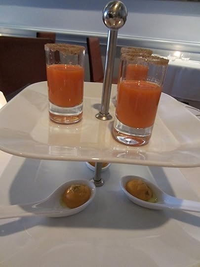 The double amuse bouche: carrot and cumin on the top, and carrot and orange on the bottom. Interesting.