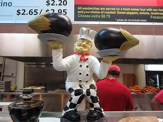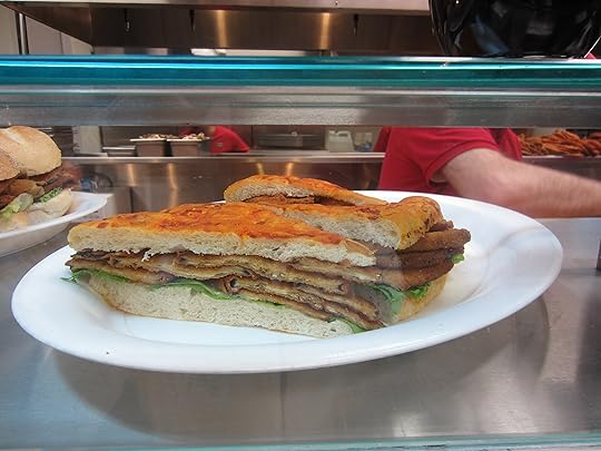 I finally got around to doing a work-out, my first in over two weeks. I ran for thirty minutes, hit the weights for another twenty, then celebrated by visiting St. Lawrence Market and enjoying a highly-recommended Mustachio veal and eggplant sandwich…