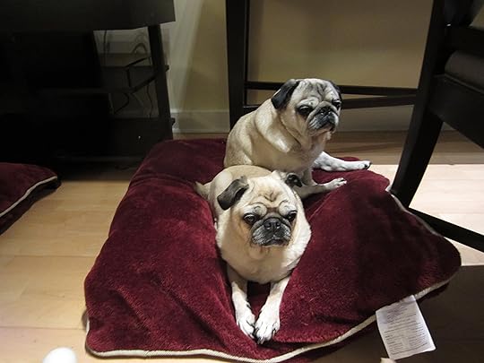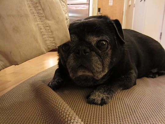It was bitterly cold. I took the dogs out in two's – Jelly and Maximus first, then Bubba and Lulu. Lulu caught her foot under the automatic door and loosened a bloodcurdling shriek that startled the hell out of the heavy-set security guard sitting at the reception desk. Then, this morning, jumped off the bed and injured her paw/leg. She's been limping around all day. Bubba, his anxiety quotient cranked up to eleven, screams (and I do mean SCREAMS) when he is left alone in the place. Jelly, suffering through a bladder infection, was up at 4:30 a.m., crying, because she needed to go to the bathroom. I ended up sleeping the last two hours until my 7:00 a.m. wake-up on the floor to comfort her. Maximus, on the other hand, is his usual lazy old self.