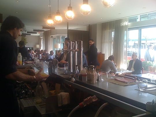 The farewell tour continued today with a visit to DB Bistro Moderne which, sadly, is scheduled to close its doors next weekend. The place was hopping and Manager Chris Gonzalez was kind enough to accommodate us with some comfy bar seats -