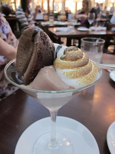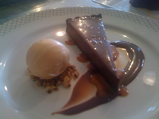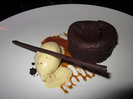 Amedei Chocolate Cake with toasted almond gelato and salted caramel sauce. The richest dessert on the menu (I checked to make sure) delivers a BIG chocolate hit in the form of the greatest sof-centered chocolate cake I've ever had. And using my favorite chocolate no less. My only quibble was, again, with the cake to ice cream ratio. I'm a firm believer that it should be 1:1, one spoonful of ice cream to accompany each spoonful of cake. Otherwise, a terrific dessert.