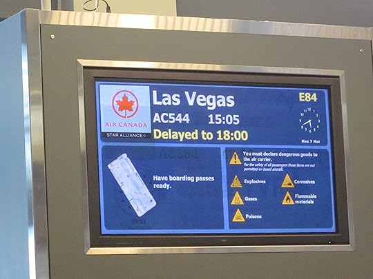 Well, that was the plan anyway. Maybe, in some ideal alternate universe, that's the way it went down but in this reality, things went a little differently. Arrived at the airport to discover the flight had been pushed an hour. Then an hour and fifty minutes. Then two hours and ten minutes. Then two and a half hours. Apparently our plane was delayed coming out of Toronto. The reason for the delay? No one, not even the Air Canada staff, had a clue.
