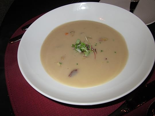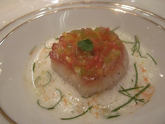 La Nois de Saint Jacques: Seared scallop, hearts of palm in coriander scented coconut milk, Mariner's style. The scallop was firm but very tender, its crown crusted, served in a broth this time Thai influenced.