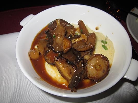 Creamy Polenta with wild mushroom fricassee. Many people I know object to polenta because of its texture, almost akin to firm mashed potatoes, but I thought it worked wonderfully here with the fricassee. One of my favorite dishes of the night.