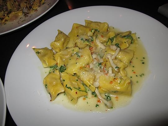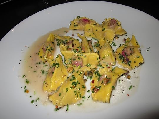 Pasta Dish #1: Duck and Foie Gras Ravioli with Marsala reduction. Given the Marsala reduction and foie gras, I thought this dish would be sweeter, a little more robust. Instead, it was possessed of an unexpected sharpness that, ultimately, left me kind of disappointed.
