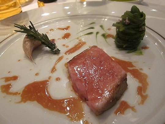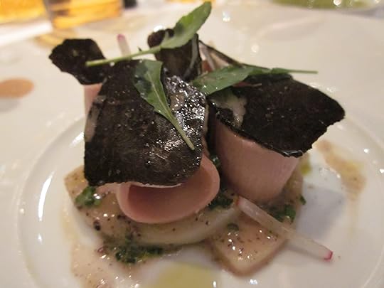 Lobster in sake broth with radish and nori. Akemi's favorite because, again, the dish was very reminiscent of Japan, delivering a sense of natsukashii that had her talking about it for the rest of the night. BTW - that's a lemon grass spear.