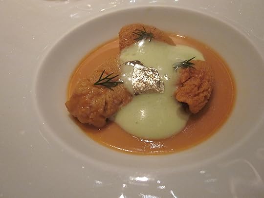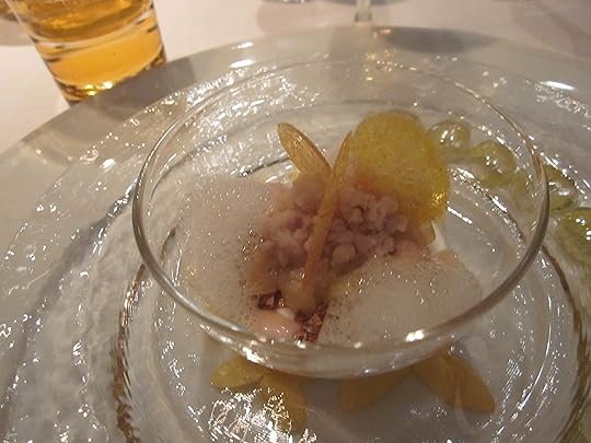 Sea urchin in a wasabi emulsion. The wasabi was quite delicate and married perfectly to the equally delicate uni possessed of a subtle sweetness you'll only find from the freshest variety.