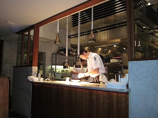 The farewell tour continued today with a visit to DB Bistro Moderne which, sadly, is scheduled to close its doors next weekend. The place was hopping and Manager Chris Gonzalez was kind enough to accommodate us with some comfy bar seats -