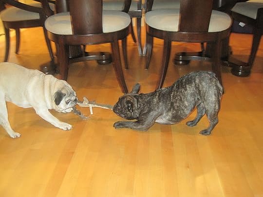 On the bright side, the dogs' new diet and exercise regimen is paying off – to varying degrees. Jelly started at 17.2 lbs two weeks ago, weighed in at 17.0 last week, is now an aerodynamic 16.4 lbs. Bubba, 26.0 lbs even two weeks ago, trimmed down to 24.6 lbs last week, is now a relatively light on his paws 23.8 lbs. Lulu, 24.0 lbs two weeks ago, then 23.4 the following week, is now almost down to her fighting weight at an even 23.0 lbs. Finally, Maximus's progress has been slow, but at least he's headed in the right direction. 25.0 lbs two weeks ago, 24.8 lbs last week, now boasting a trimmer waistline at 24.6 lbs. At this right, he should be ready to fly by mid-June.