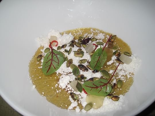 I opted for a seat at the chef's table which allowed an unobstructed view of the goings on in the kitchen. I was entertained by some wonderful plating techniques but, alas, no Ramsay-esque pyrotechnics.
