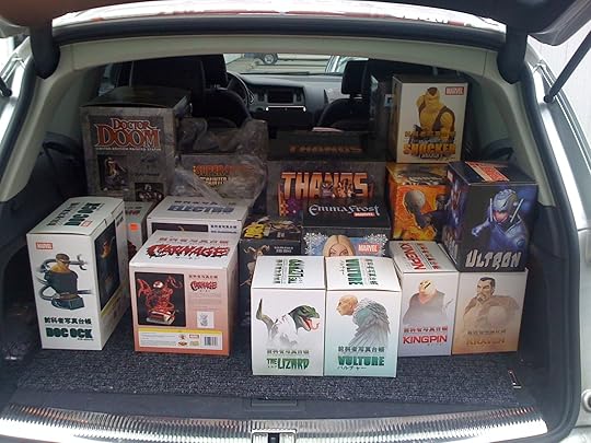 I spent the rest of the day packing up the books in my office. I stuffed eight boxfuls into the back of my SUV, and I'm still not halfway done! I'll pack up the rest next week when the ever-lovable Carl Binder heads back into town for one final round of mixes, VFX approvals, and schnitzel.