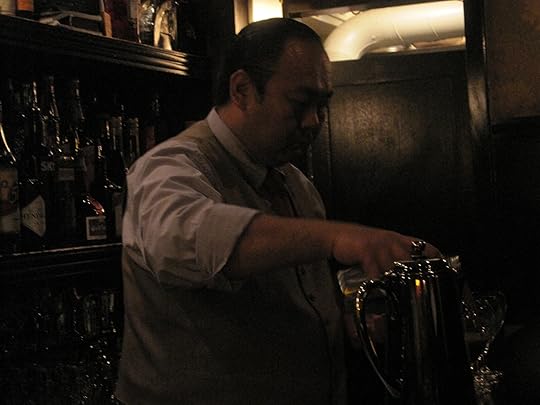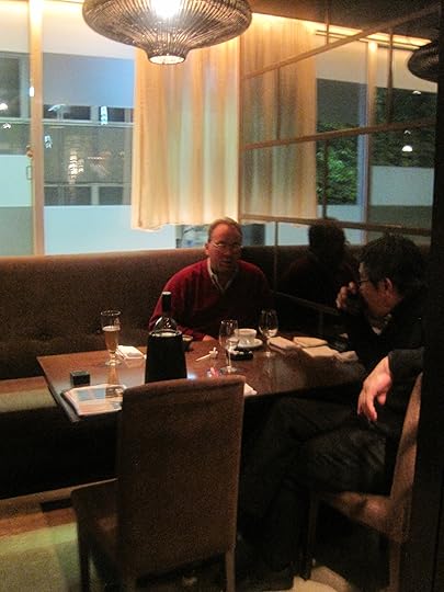 But I'm not on the west coast. I'm in Toronto where I am enjoying (?) the ear-numbing chill of the type of winter I left behind long ago. Following an uneventful flight (mostly spent reading Jeffrey Steingarten's immensely entertaining It Must Have Been Something I Ate), we touched down in Toronto early and caught a cab back to the hotel where the gang awaited us. After checking in and dropping off our stuff, we headed downstairs where we joined Rob, Sue, Alex, and Klaus in the lounge for drinks and talk of cars, ice driving, Tokyo, Paris, and, of course, brain ravioli. Paul, my writing partner, belittled my choice of cocktail (the moscow mule), then proceeded to order himself a "Manhattan with a twist", one of those drinks only ordered by characters in old Dashiell Hammett novels.