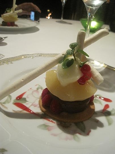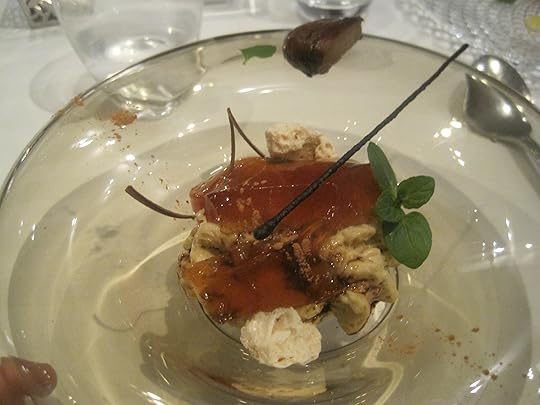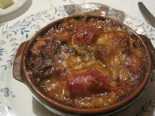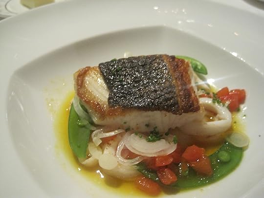 Monkfish with a shallot-fennel-Pinot Grigio reduction, cinnamon and nutmeg-dusted squash, salt and pepper potatoes, butter-dill carrots, and potato croquettes (the latter compliments of Akemi).