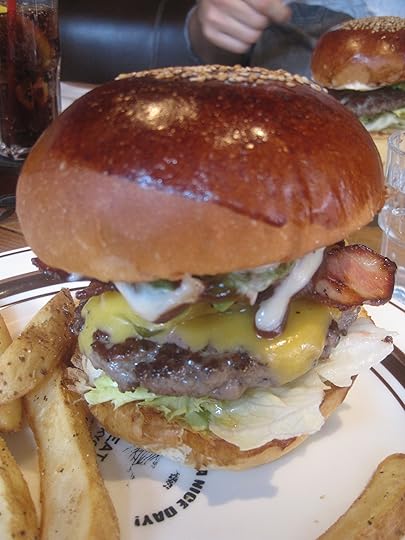 Last night, the gang got together for dinner at Romer's Burger Bar. The highpoint of the night? Ashleigh doing a shot. And not just any shot. I'm talking about the lemon-cream dipping sauce that accompanied our mini-doughnuts.
