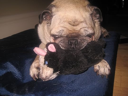 I conclude today's blog with a picture of my pug, Jelly, sitting on a duck.