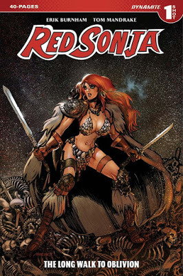 Courtest Dynamite. Cover by Moritat.The second one-shot is RED SONJA: THE LONG WALK TO OBLIVION.