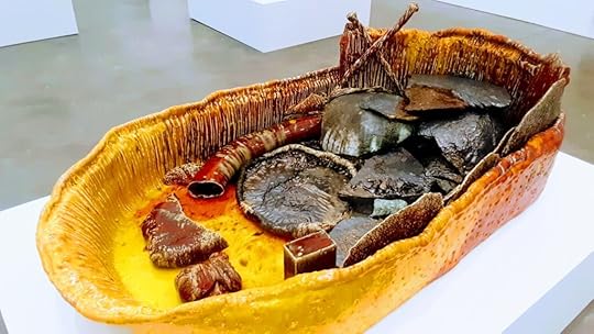 My daughter went with me to the ICA. While we wandered through the rooms, I was struck once again by how subjective the relationship is between artist and viewer as we stood in front of one of Ruby’s pieces and discussed our reactions. This was a ceramic basin filled with odd bits of pottery, part of Ruby’s “Basin Theology” series.