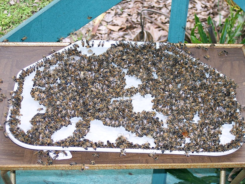 If this works for you as it has worked for me, be prepared to use up to 10# of sugar a week because these little suckers can suck up the sugar water. Pictures attached. It is a lot of fun to watch them, they will not sting and will let you watch them and get very close to their feeding.