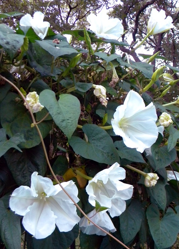 The weather is gorgeous here in Edmond since the cold front, and ensuing rainstorm moved out the heat dome. My moonflowers also appreciated the milder weather, blooming as never before tonight. Yes, they smell as wonderful as they look.Eric'sWeb