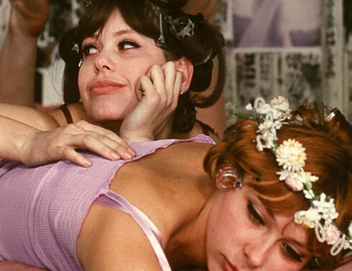 From IMDB: Two teenage girls, both named Marie, decide that since the world is spoiled they will be spoiled as well; accordingly they embark on a series of destructive pranks in which they consume and destroy the world about them. This freewheeling, madcap feminist farce was immediately banned by the government.