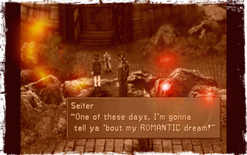 In Final Fantasy VIII, love is the overall theme. It's a love story, but it's also about how different people love different things, and a lot of characters in FFVIII simply love *service*. Seifer is in love with the idea of being a great soldier, but he doesn't want to join an army to do it, because he doesn't want to fight other people's wars. Obviously, that leads to a little power hunger.