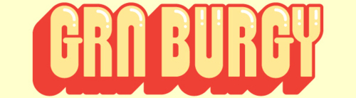GRN Burgy by Marco Goran Romano. GRN Burgy is a funny display typeface for massive headlines, posters and, obviously, fast food logos. It takes inspiration from the earliest american graffiti and from fast food culture. Get it free