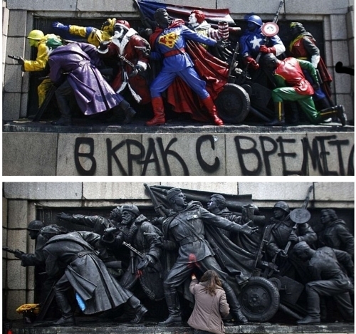 Bulgarian Prankster Transforms Statues of Russian Red Army Soldiers Into Superheros