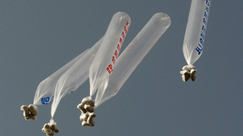 Knowledge Drop of the Day: The South Korean military dropped thousands of leaflets attached to helium balloons on their northern siblings, spreading news of the revolutions taking place in the Middle East in hopes that North Korean citizens will be encouraged to rise up against their Dear Leader.