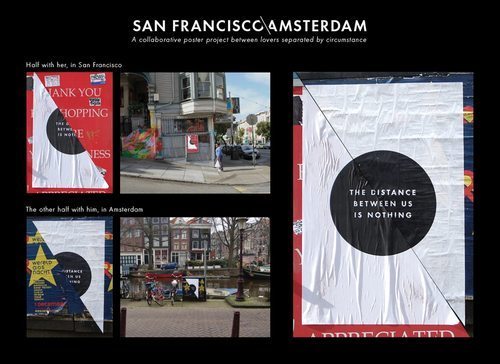 Street Art of the (Valentine's) Day: "This is a collaborative project between a boy and a girl who, despite the geographical distance between them, remain together. They designed these posters with love, cut them in half, and posted their respective halves in Amsterdam (his home) and San Francisco (her home)."