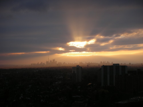 I just took this photo from my balcony a few minutes ago. It sort of looks like the city is about to be trampled by horsemen, doesn't it?