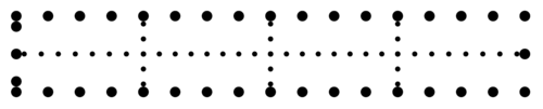 Using dots or Japanese dots takes us one step into the solution, but I can't get past what you see above. Dots are in the corner of each cell, and I can change the size of the dots (2pt on the outside, 1pt on the inside, just to demonstrate), but I can't substitute the non-corner dots with a straight line, nor can I contstrain the dot to just the inside of the table.