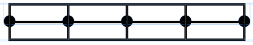 In the image above, I have a table with four columns and two rows. On top of the table, I have five ellipses. These are all seperate objects, however, as the ellipses are simply sitting on top of the table. Though it's attaining the aesthetic I'm going for, I consider this a messy solution. Grouping them together might do the trick, but it can be a lot of work at any sort of larger scale. Creating a page full of these would require a lot of step-and-repeating, grouping, and unnecessary work. Not to mention when the design inevitably changes and I have to alter the size of the ellipses.