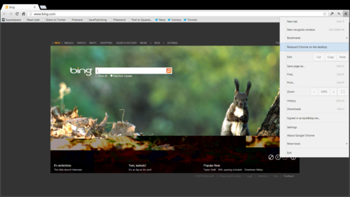 At first, I thought it was a bug. When I launched Chrome in Windows 8, it would sometimes go full-screen. I don't mean full-screen like the tabs disappear; I mean full-screen like a native Windows 8 app, with all the benefits and restrictions of one. Attachments used the metro file browser, audio only played when the window was featured, etc., But it only launched like this sometimes; other times it launched normally, like a regular old panelled window.