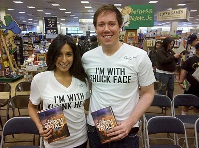 1. I had my last event of the year on Saturday, and I want to thank B&N and all the people who came. I was pleasantly surprised by the great turnout - thank you! And here's a picture of Melissa and Matt, who came with the coolest t-shirts ever (btw, I signed those before they put them on!):