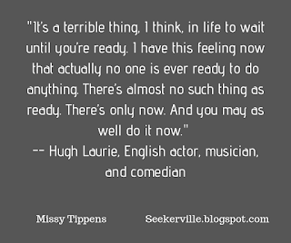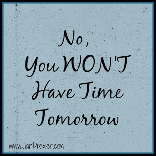 “I’ll have time next week,” I tell myself. “Right after I finish this book.” Or “Right after I’ve house trained the puppy.” Or “Once the children are grown.”