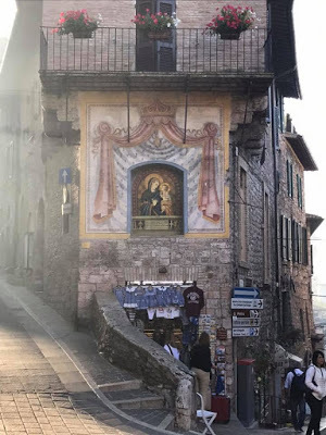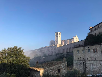 Basilica of Saint Francis sits high on the hill in Assisi.For me, packing is always a challenge. In the month prior to our tour, I checked the weather in Italy to get an idea of what to expect. The forecast was for temps in the mid-70s during the day with lows in the 50s at night, and we were blessed with sunshine and blue skies throughout our trip. Savvy travelers know to layer their clothing and to always be prepared for showers. We had water-proof jackets, umbrellas and ponchos but, thankfully, never used our rain gear. In fact, a light jacket and a sweater for the cool mornings were all we needed.