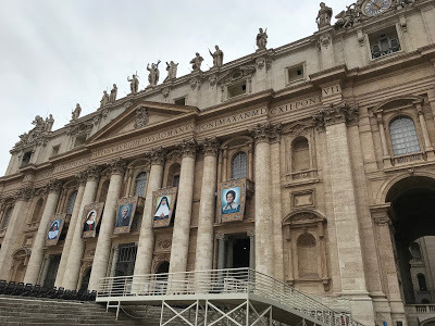 Saint Peter's Basilica, Rome. The photos hanging on the front facade are of the five newly canonized saints.