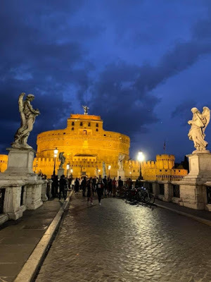 Castle of the Angels at night.Hotel rooms are typically smaller in Italy. Lights are activated in hotel rooms by slipping your key into a slot just inside your room near the door. When you leave your room and take your key, the lights automatically turn off, saving electricity. Adapters are needed to run electronic items with different countries having different plug configurations. You can find adapters at various big box stores or luggage shops. I’ve found a good selection at TJ Maxx. One of my adapters has two USB ports so my husband and I can charge our phones at the same time. (BTW, most tour buses have Wi-Fi and charging stations.) Some hotels have special US sockets in the bathroom marked for “shavers only.” I have a hair dryer that can convert from US to 220 volts/international and use that when I travel, although the Italian hotels all had hair dryers. I charge my iPad and iPhone with an adapter. Small point and shoot cameras use an adapter. If you take a laptop or have a high-tech camera, check with the manufacturer about international usage. A couple of our cheaper adapters didn’t work so I advise taking more than one…just in case.