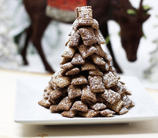 Ingredients:3 cups Chex Chocolate cereal6 pretzel sticks (the thick kind, made for dipping) ½ cup peanut butter¼ cup Nutella3 tablespoons butter, softened1 cup powdered sugar