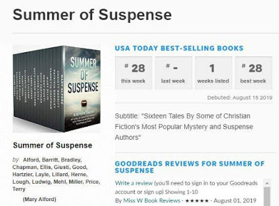 SUMMER OF SUSPENSE released on August 6. For a number of months prior to the release date, we encouraged readers to pre-order the anthology on Amazon, Barns & Noble or Apple. The price during the first week of release was 99 cents--a fantastic buy for more than 800 pages of reading enjoyment. The authors promoted THE SALE OF THE YEAR and so many wonderful folks took advantage of the great buy.