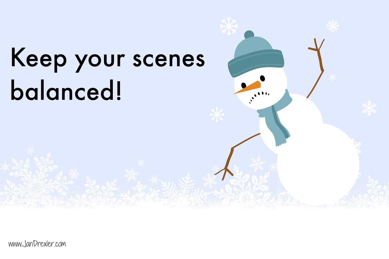 So my balanced scene would be around 300 words for the beginning, 600 words for the middle, and 300 words for the end. Do you see the symmetry?